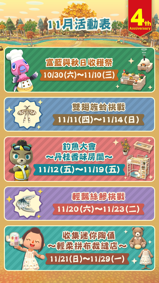 11月是秋日收获祭,也是动森手游推出四周年。