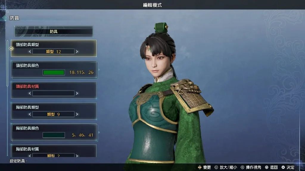 本作中,武将编辑系统较前作大幅升级,将可以调整头发、脸庞、胡须及化妆等细微的设定。此外服装部分也将提供新要素而可以进行“重叠穿戴”。与前作一样,玩家可以自由设定各个部位的防具,本作中允许玩家可以在衣服外再穿戴铠甲。另外,散步及特殊事件中,将可以以卸下铠甲的装扮进行游玩。