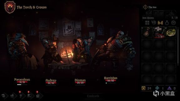 在接到老祖的希望火苗之后,我们需要挑选雇佣兵组成一只自己的队伍:相对于1代游戏的“工具人”模拟经营作为侧重点,2代游戏更加偏向于小队RPG模式的“肉鸽爬塔”玩法,并且在最开始只能使用固定的初始队伍:战士巴爷、强盗迪哥、盗墓奥妹和瘟疫医生阿P开始游戏,而且本作中不存在角色的等级提升,每个角色很长时间内只能使用初始的5个技能。