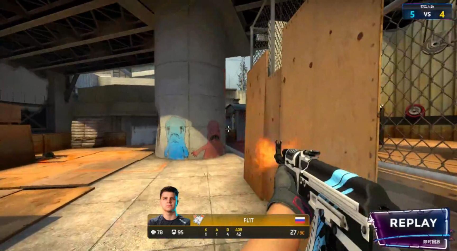 图一来到Overpass,vp先担任进攻方。上半场手枪局,vp四人选择前顶至厕所前点,在做到一换一后决定先派buster到A大摸信息,其余人待命。随后Jame又到下水道骚扰了一下,但是根本没法骗到navi的回防,于是vp就在最后20秒被迫进攻了三人重守的A区,被electronic用双枪拿到三杀终结这一局。输掉手枪局的vp选择eco后再起长枪,想利用双人前顶的方式占下下水道,然而electronic及时补防到位并将雷包打掉在下水道内。vp在三人抱团捡到雷包后决定走长管展开进攻,凭借手中的道具清掉单人守区的electronic并放下雷包,navi其余两人决定保枪,2-1。