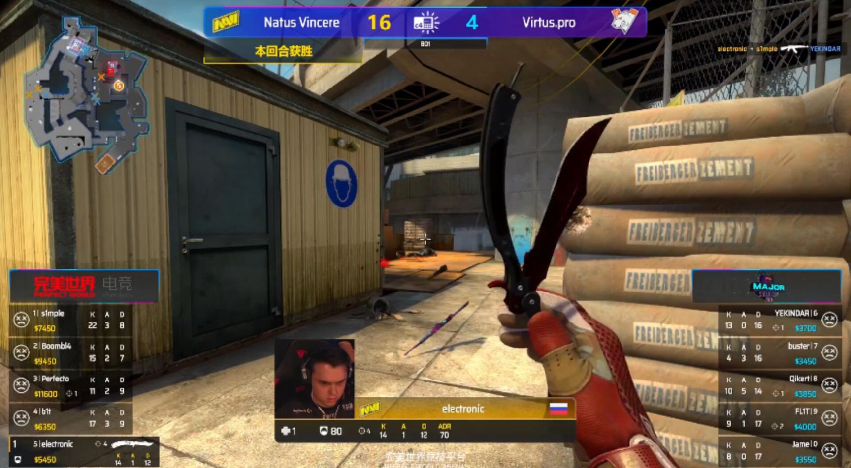 上回合保下3把枪的navi枪械依旧不佳,而原打算走三人进攻A大的vp在FL1T死于气球后陷入了静摸,直到40秒时才决定从厕所进攻。这时navi叫出了一打一卖的站位,让刚刚清掉B1T的vp根本想不到还有个s1mple还站在厕所门口,随后s1mple也十分大心脏地将包匪放进雷区后才开枪,让vp为搜点不仔细付出了代价。而后navi又派s1mple来到工地做双人摆铺,拿到双杀后放出雷区让对手下包,从而能够利用人数优势以及对手来不及换位置的timing打回防残局,成功拿下这一分,送vp进入半起局。半起局YEKINDAR的英雄AK虽拿到开局双杀,但Boombl4和s1mple及时补防到位3+2扼杀了对手的翻盘希望,6-3。