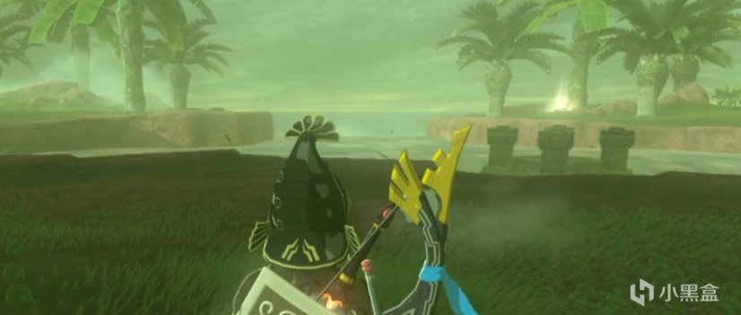 重点是林克爬到顶部之后往下看,看到了这些蘑菇形状的树。