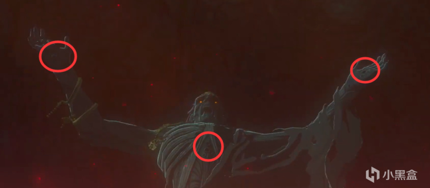 在盖侬的肉身上,我们能看到一些圆洞伤口,这可能是在致敬《塞尔达传说:黄昏公主》中,林克集结六贤者,用六贤者之剑和大师之剑斩杀盖侬的剧情有关。