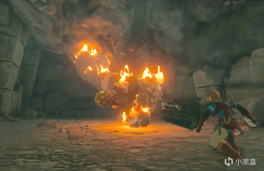 这一帧的画面中可以看到林克正在利用手上一个龙头形状的道具喷火,焚烧一个爪子似的触手怪。暂时不明确这个触手怪是神庙里的机关还是路边的野怪。如果,林克因为这只神秘的手,而失去了希卡之石,那么这个喷火的能力大概率是用来弥补失去了圆炸弹和方炸弹后的输出不足。
