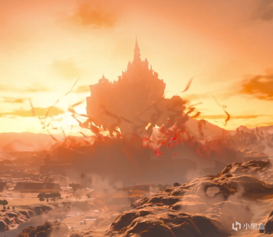 海拉鲁大城堡突然升到了空中。虽然这一段放在了预告片的最后,但是震动效果是和第一部时,离开初始台地后,所有的希卡塔从地底升起的效果大同小异的。
