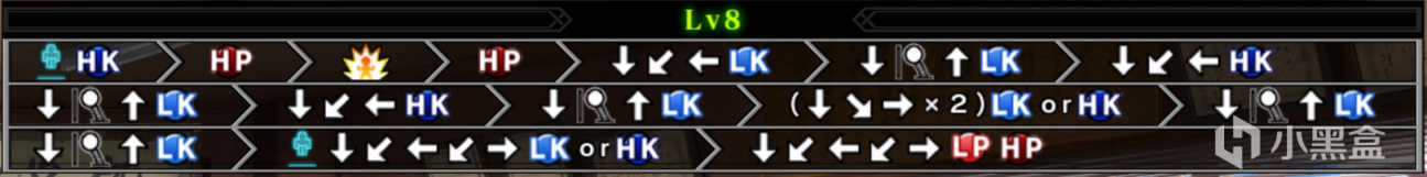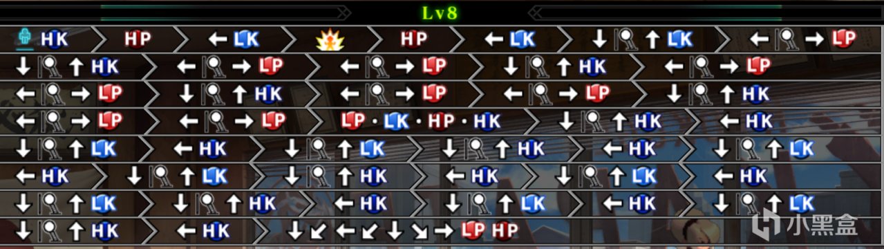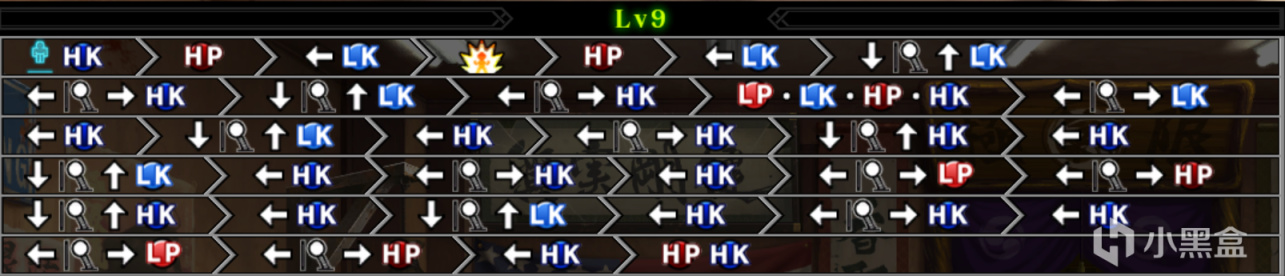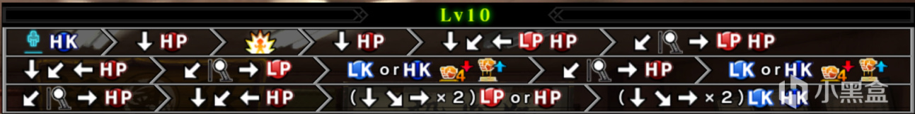 阴间连段三连,8是标准BC加高难革命连,9是极限蓄力加高难革命连,10的每个C波都需要前走一步,得有极其精确的手法才能完成。