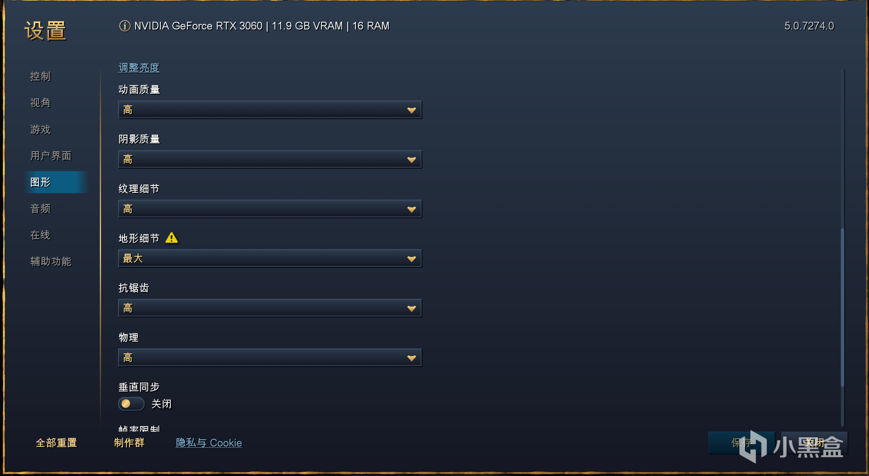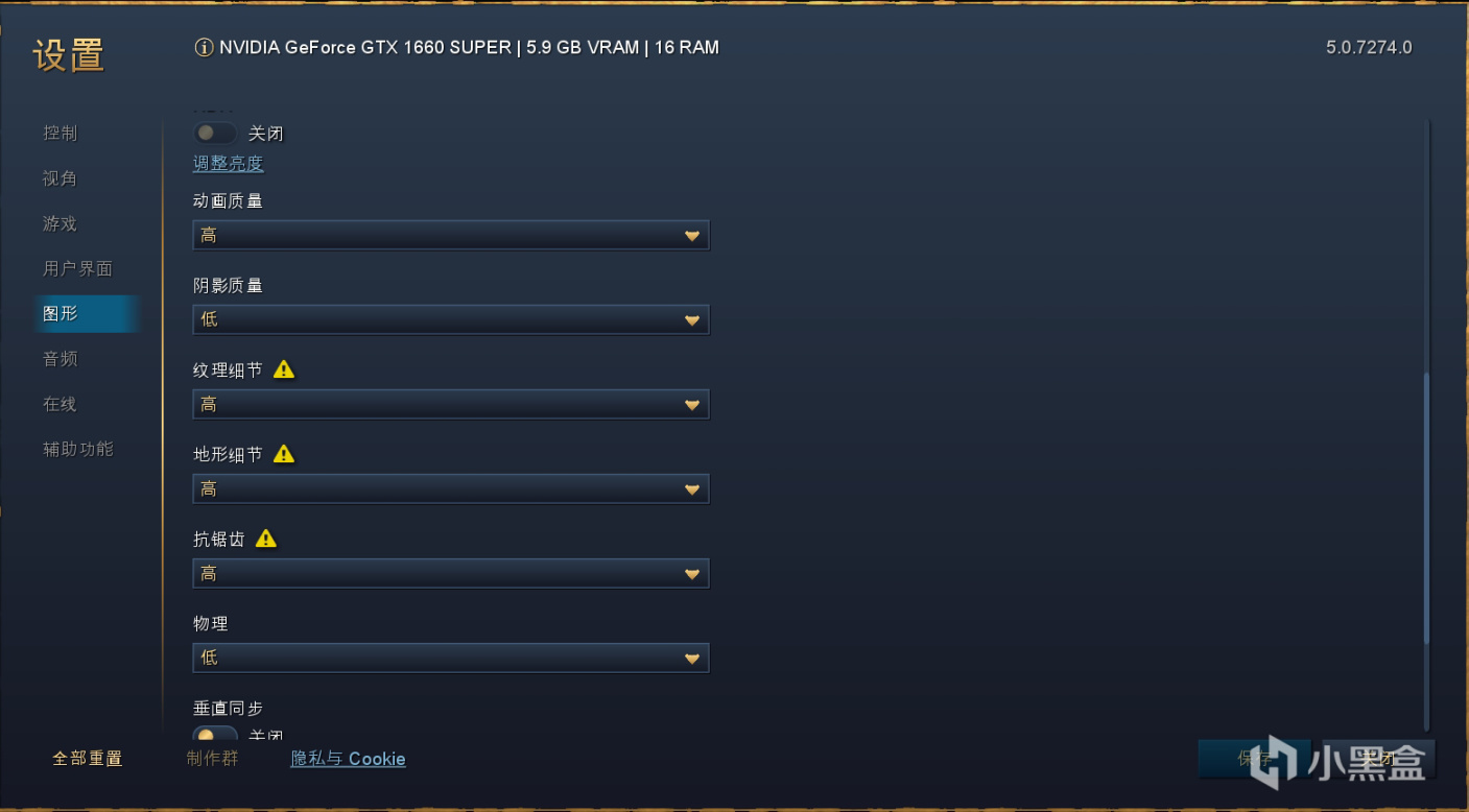 对于RTS游戏,个人推荐的优化方案是降低阴影至低,本身阴影就会很大程度影响性能,然后地形细节降一级以至于不会影响太多画面效果,物理效果其实不拉近镜头的话效果不明显,因此也是降至低,调完这三个选项后我们再测试一下对比手动最高画质。