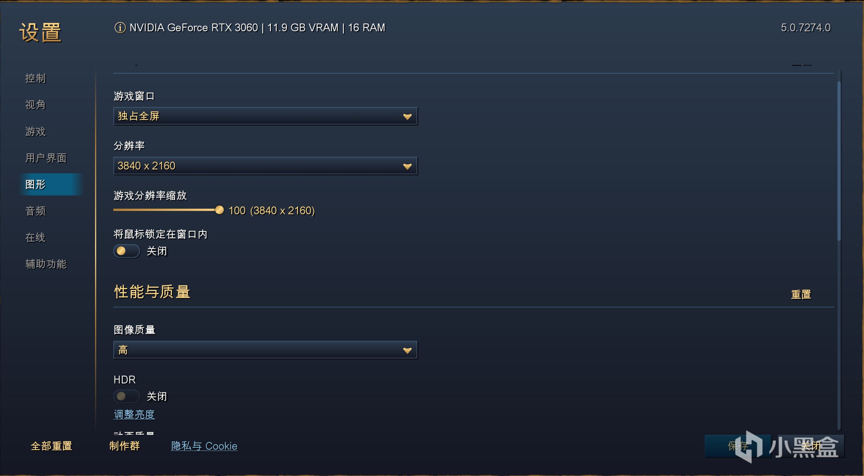 图像预设质量分为低、中、高三个档位,具体到选项其实没有很复杂,除了常规的纹理、阴影等,RTS游戏比较凸显的地形细节、物理效果可调节就很给力,游戏除了本身支持HDR以外,内部播放的4K影片也是支持HDR的(作为测试样本也不错的),有一台真正HDR的显示器来游玩才是完整的体验。