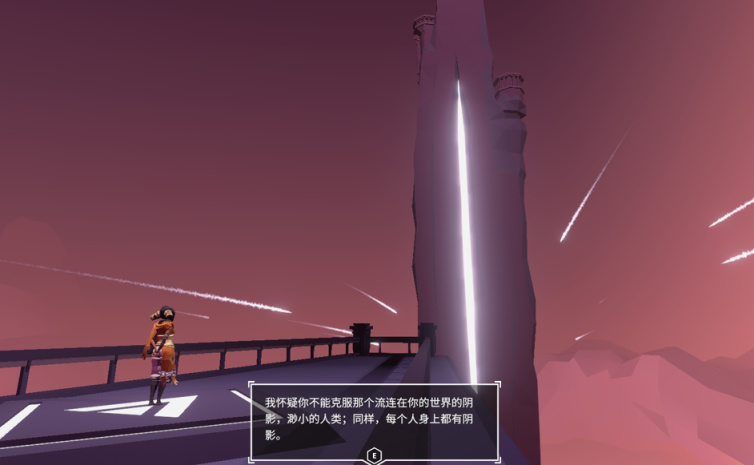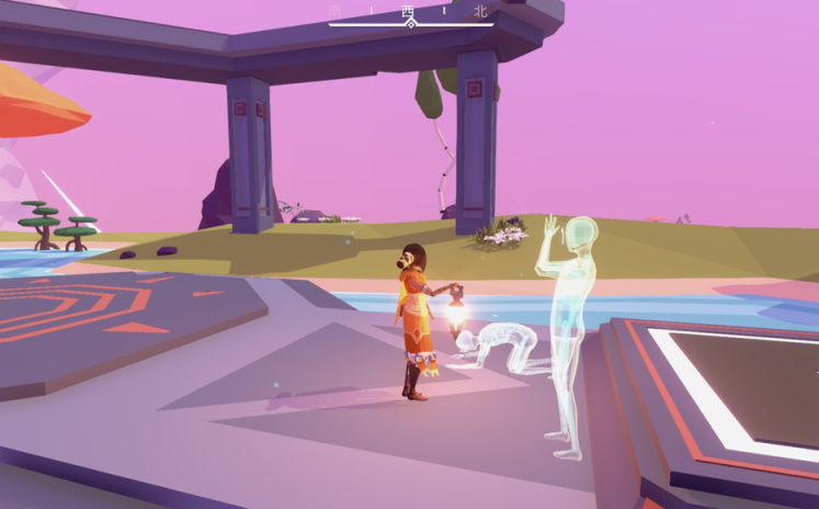 他让我们去找一个叫黛安娜的人,这便开始了我们的游戏之旅。首先变成飞鸟你要按空格在按e就行,控制方向ad,上下ws,空格是加速飞行虽然变成飞鸟飞行时会模型会卡顿。但都无伤大雅因为配合上轻松的音乐加上风景你不会注意到这一点,见到黛安娜后我们了解了作为朝圣者必须要拜访三位宫殿。里面分别有不同的看守者而卡拉的提灯可以解放他们的封印,并且卡拉的提灯还能照出过去人的灵魂。