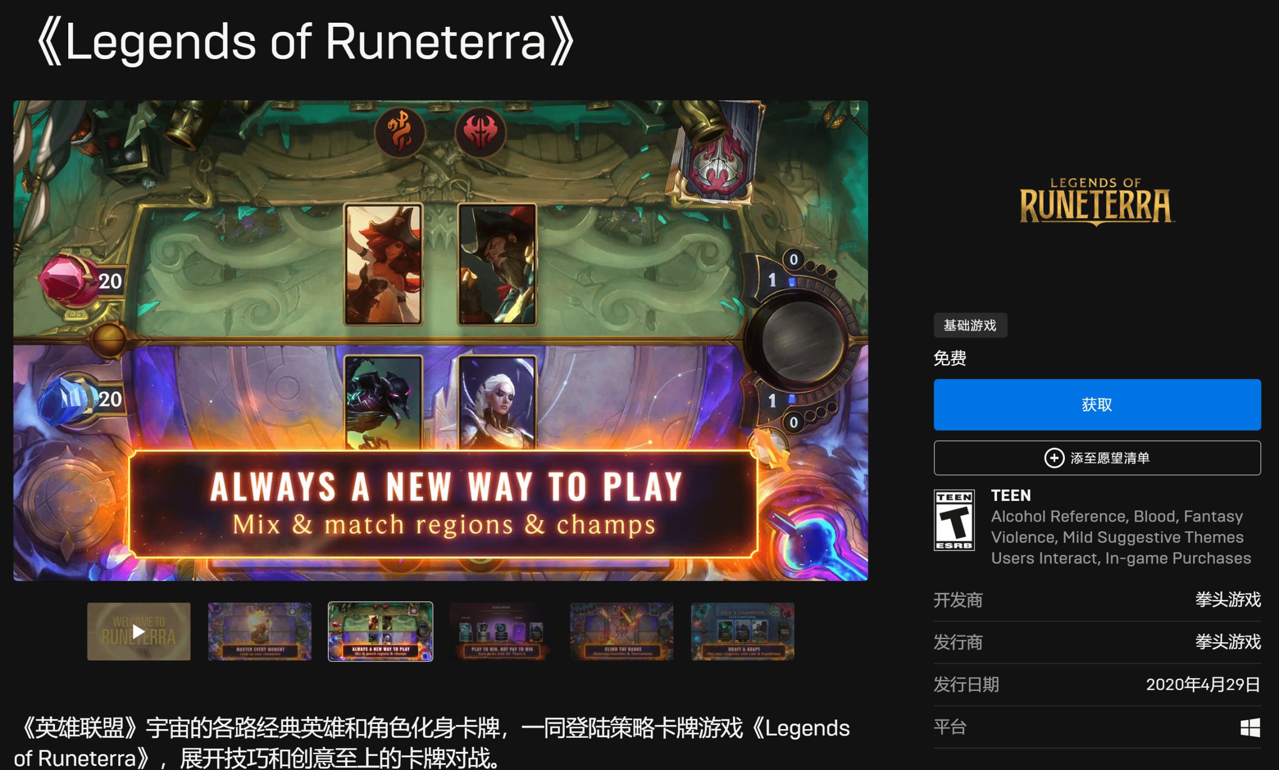 https://www.epicgames.com/store/zh-CN/p/legends-of-runeterra