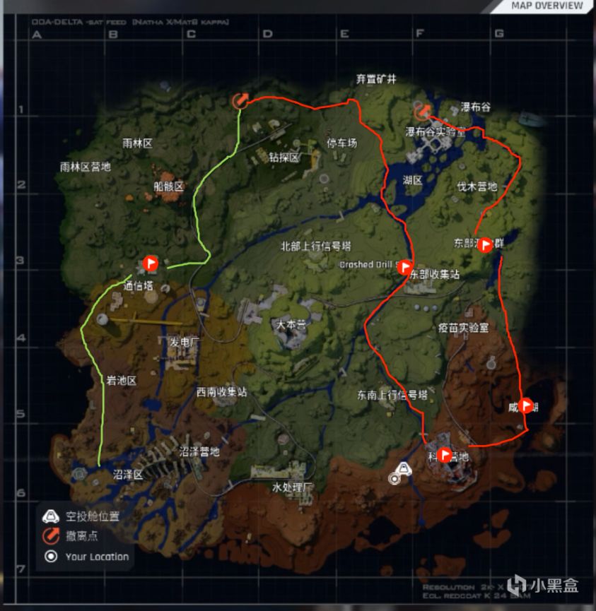 线路主要搜刮点位:科研营地,东部洞穴群,瀑布谷实验室