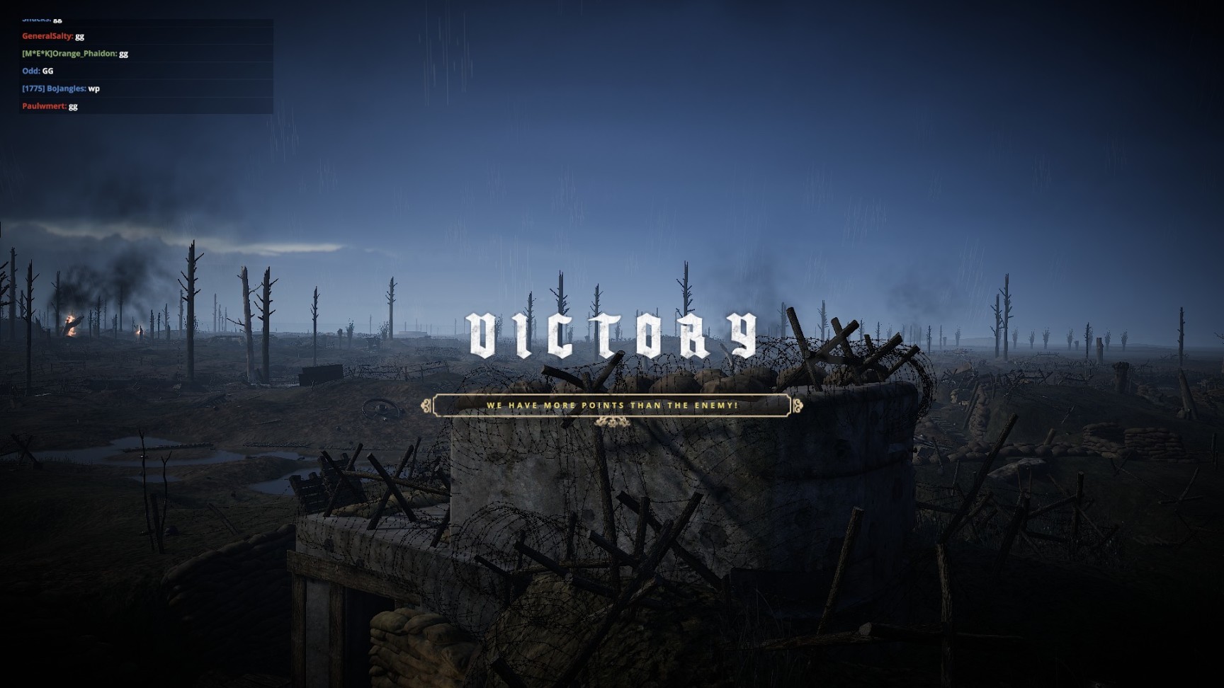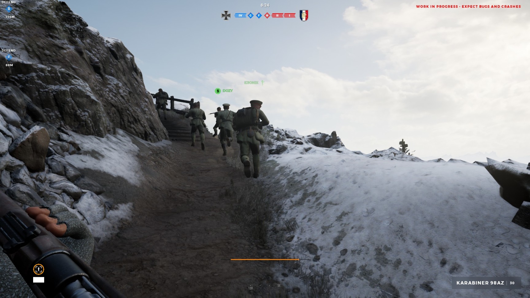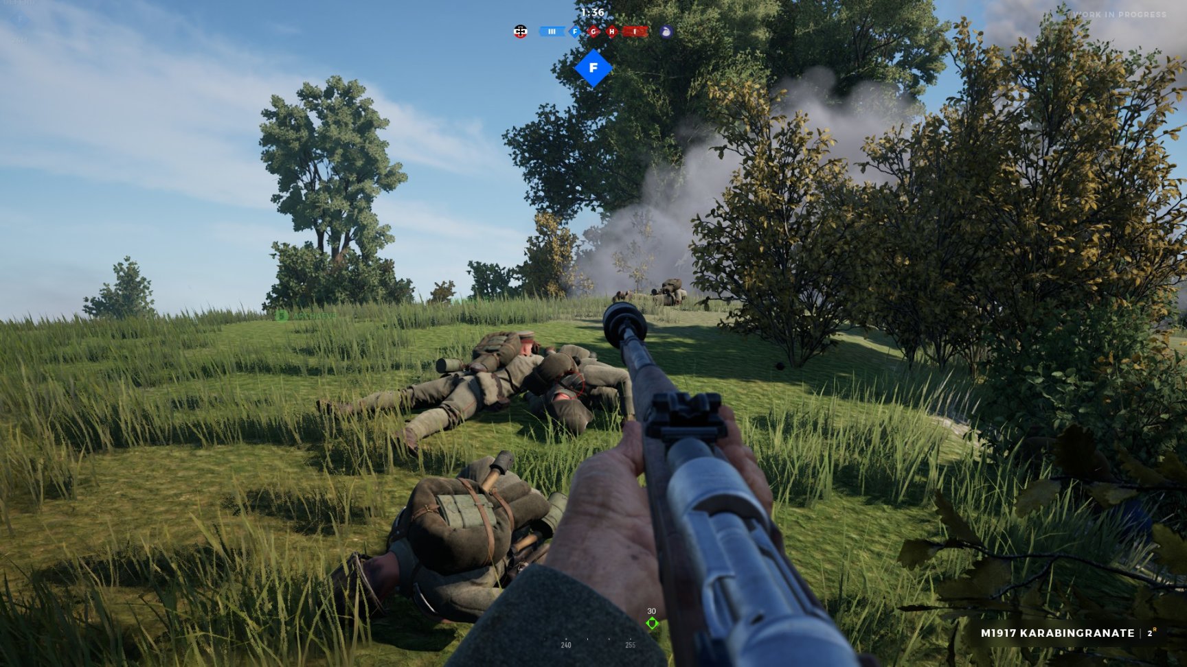 这儿就要提到我不太满意的一点:凡尔登中的武器太准了,栓动步枪的瞄具太小,精度又太高,基本上指哪打哪,后面的坦能堡也存在同样问题(我怀疑开发者没有摸过真枪)。这一点破坏了游戏的拟真性。不过考虑到凡尔登是以快节奏对局为核心玩法的游戏,似乎也可以接受。