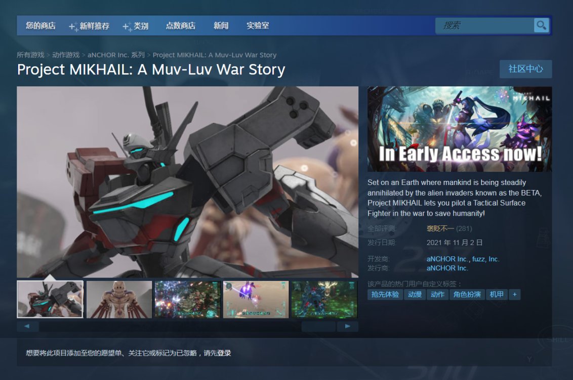 《Project MIKHAIL: A Muv-Luv War Story》是MIKHAIL基于《Muv-Luv》制作的一款战斗动作游戏。游戏的抢先体验版已经登录steam,不支持中文。
