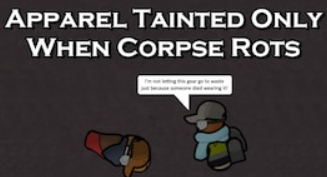 改变了原版只要小人死亡,其所穿衣物就具有“死人穿过的”的减心情debuff的情况,现在只有当尸体腐烂时,所穿衣服才具有该污点。