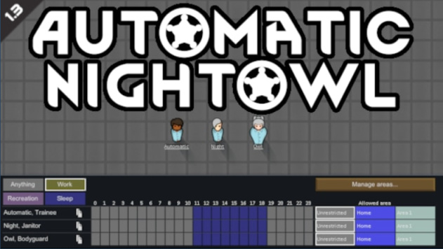 基于游戏中具有夜猫子特质的小人在白天工作效率很低,夜晚工作效率翻倍的设定,该mod会自动将具有这类特质的小人的作息表安排成白天休息,晚上工作。