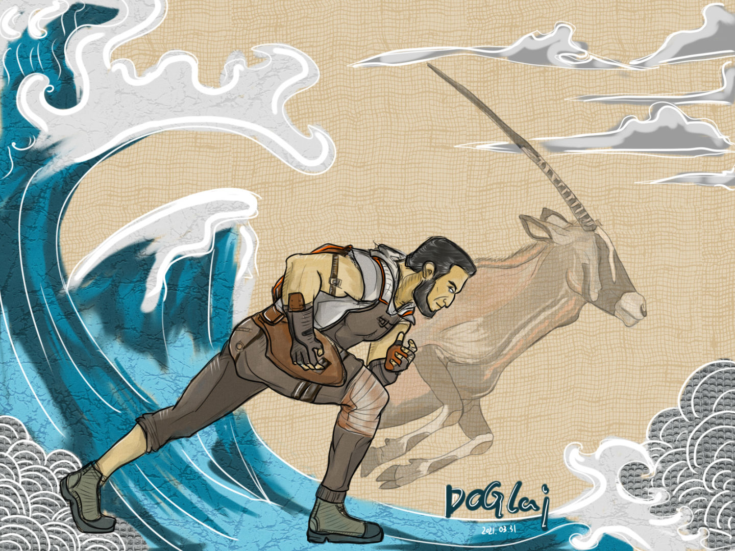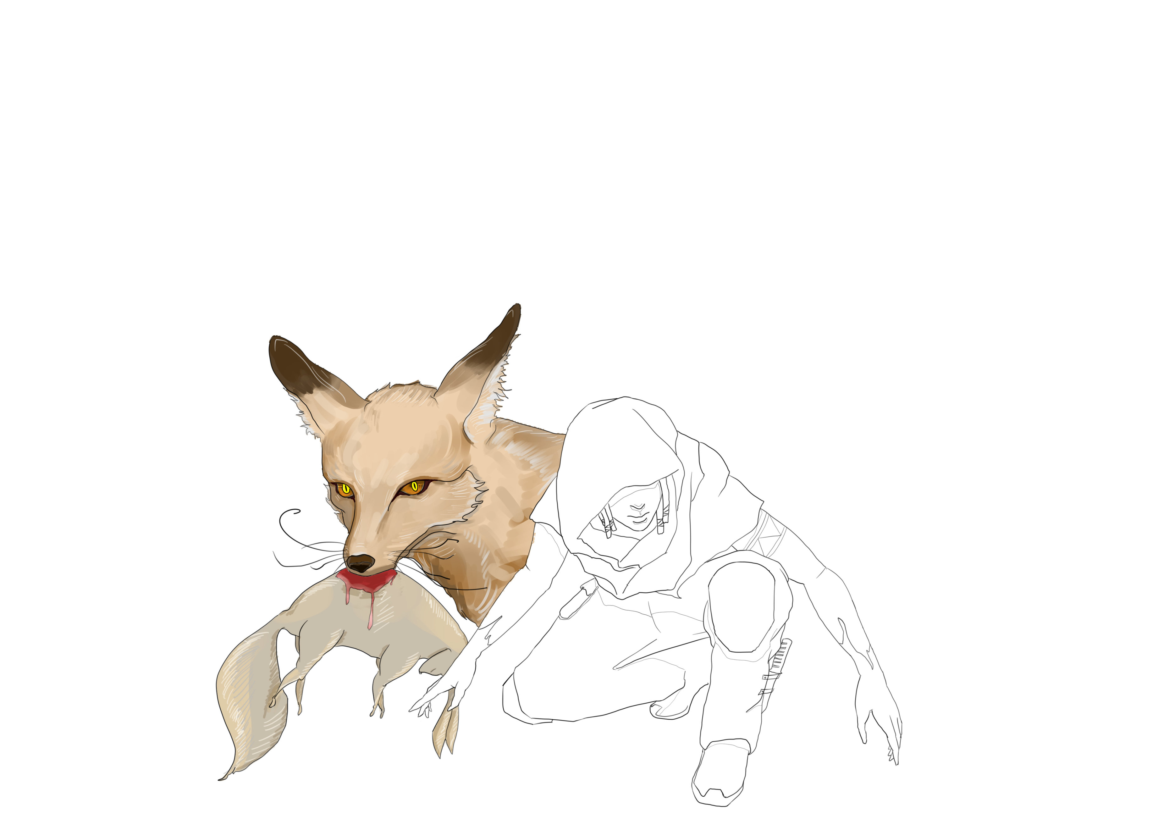 首先为什么画狐狸呢,因为我感觉她的减速装置有一种灵动的感觉,昼哥联想到美洲狮,我感觉有点笨重了。人取了结尾的下蹲动作,稍微做了修改,做一个捕猎的感觉。