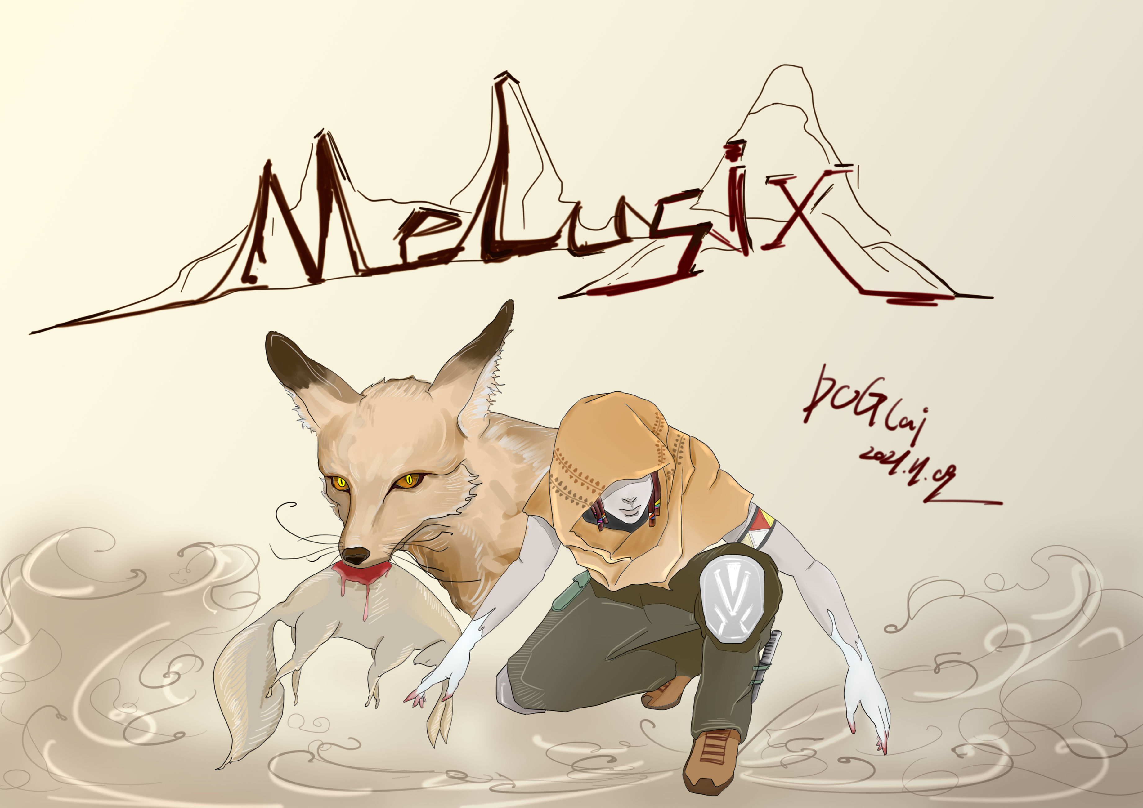 和皮肤不同的是,我取消了头发的珠子,直接换回了脏辫。指尖加了血,和狐狸捕猎咬出的血呼应。其他变化不大。