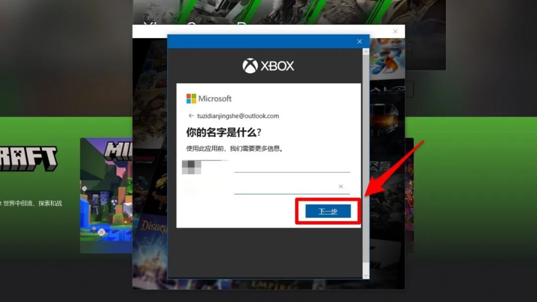 11、继续按照提示输入姓名后点击“下一步”。
