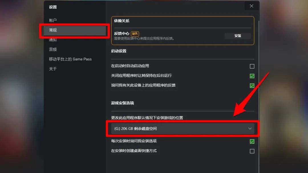 23.还有一点因为Xbox的默认游戏安装位置是在C盘,所以大家在下载游戏前记得把游戏的默认安装位置修改为除C盘以外的其他盘,不然到时候电脑真的会莫名其面的卡顿,点击Xbox右上角头像,点击“设置”点击“常规”即可看到修改的位置,根据自己的情况修改即可。