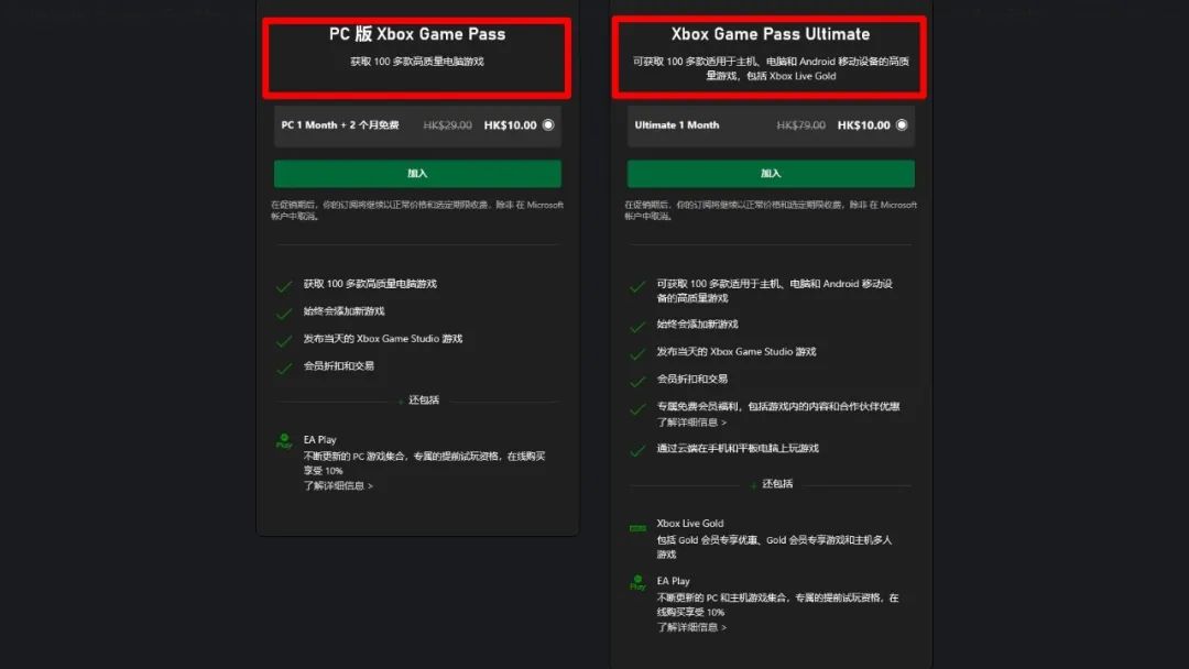 PS:XGPU包含了XGP、EA play和Xbox黄金会员以及云游戏,虽然都是10港币但是时间不一样,XGP是10港币/3个月,XGPU是10港币/1个月。