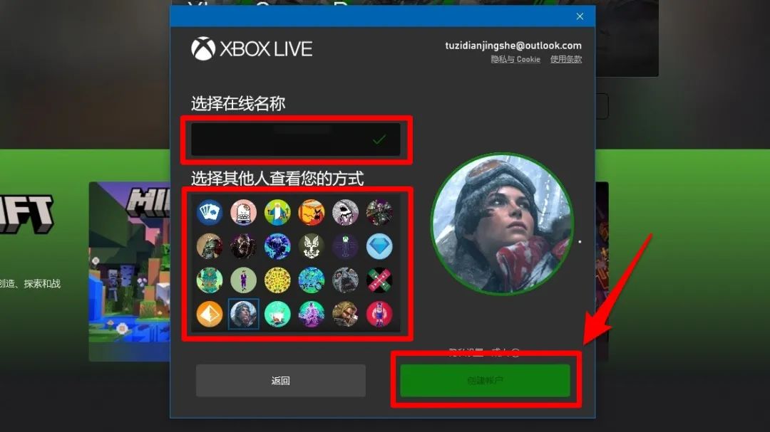 13、之后按照提示输入你的名称、设置头像即可,设置完成之后点击创建账户。