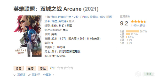 其实不用我过分安利,刚好赶在EDG夺冠的这个热门时刻,《双城之战》已经自带了很强的流量加成,开播了才一天,在豆瓣上已经有1万名观众为它打出了9.2的高分;