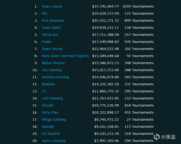 而奖金榜前三被Liquid、OG以及EG三家俱乐部占据,这三家俱乐部在电竞领域均有着举足轻重的地位。