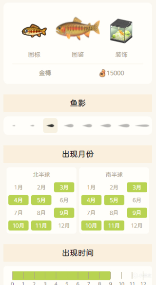 同时,内页模板也得到了改良,可以直观地比较鱼影差异、刷新时间、图鉴位置等数据,如有打算补全收集的岛主们请务必尝试一哈~