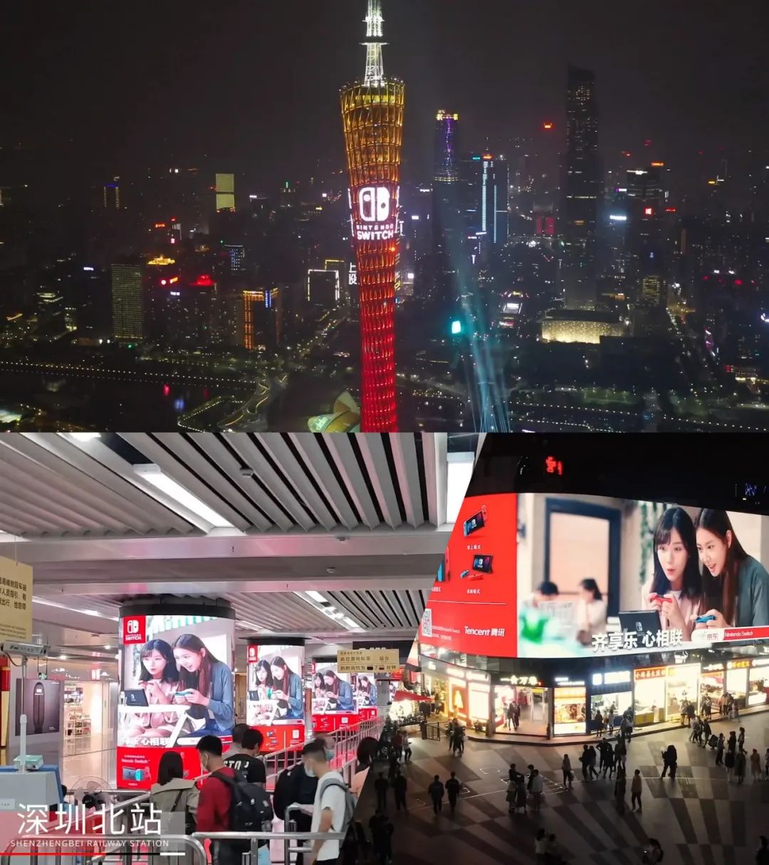最近国行Switch把广告打到了广州塔、深圳北站、武汉江汉路。