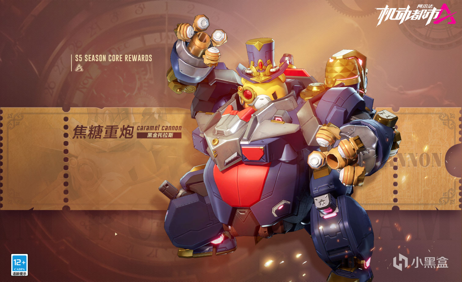 以“蒸汽航线”为主题的S5赛季开启后,赛季皮肤奖励也正式上线!高额伤害的重装机甲焦糖重炮将迎来S级外观“黑金托拉斯”。高高耸立的礼帽,复古的单边眼镜等蒸汽朋克元素交织。