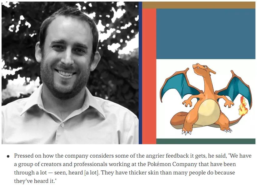 宝可梦公司营销总监JC Smith最近接受axios采访时,被问及宝可梦公司如何看待一些愤怒玩家的反馈。