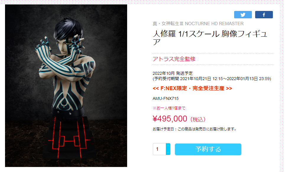 游戏发售同时,由F:NEX制作的1:1大小,半身人修罗雕像也已启动预定,这个半身雕像价格高达49.5万日元,预计明年10月交付,限量生产一人只能定一个。