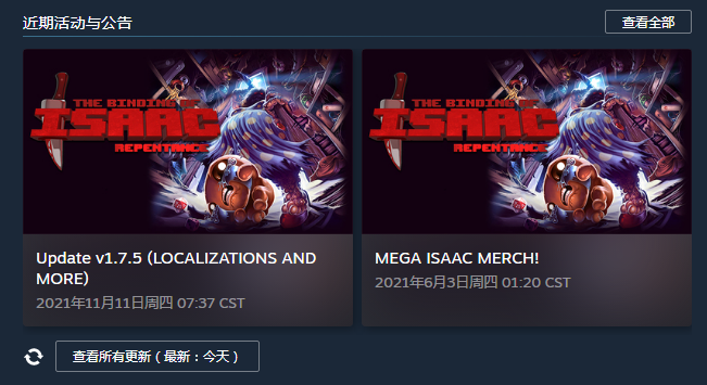 《以撒的结合》PC版今日率先推出了1.7.5版更新,加入中文支持和大量内容更新调整和巨量修复