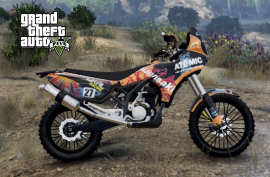 越野机车绝对的越野之王。几乎是可以横跨洛圣都的存在。翻越高山沙漠,机动性极强,动力,抓地,转向都是很不错的。喜欢越野的骑士们不要错过。我建议是纯色搭配。