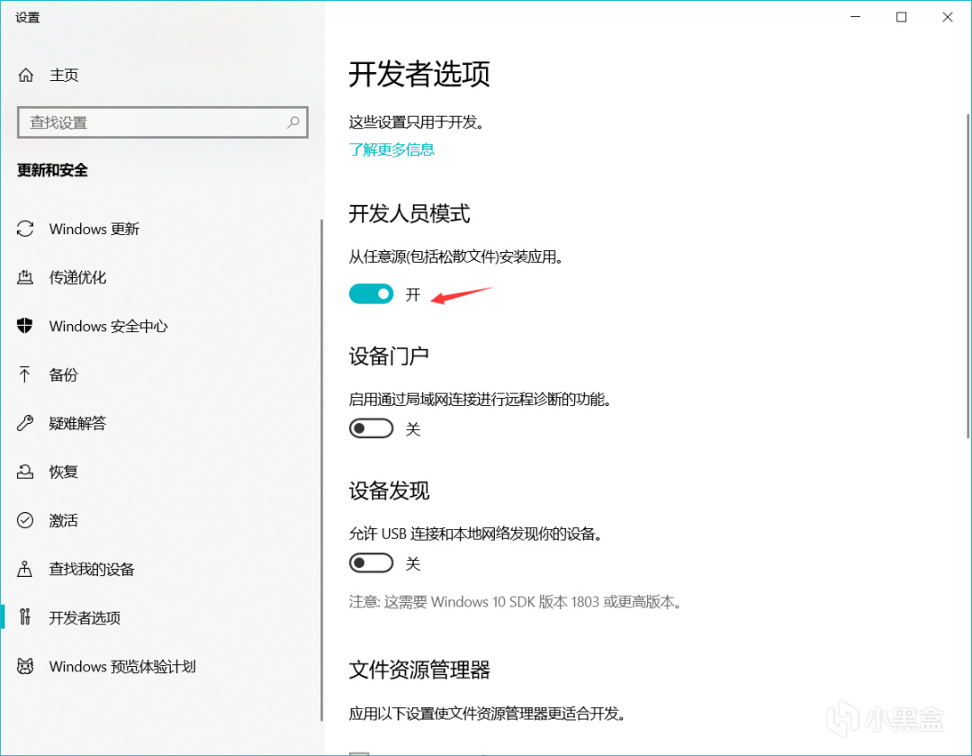 步骤1:打开电脑开发者模式。