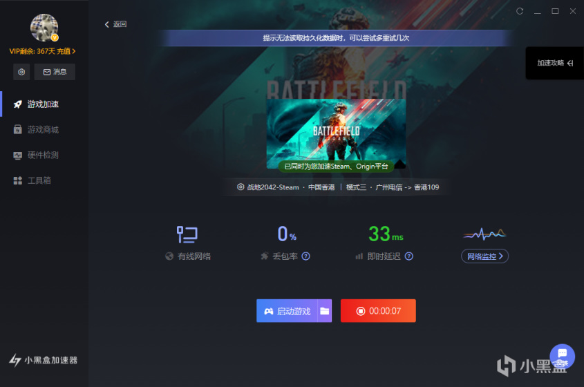 网络加速建议各位玩家开加速器,我用的小黑盒加速器,五个区服,四种模式,低延迟,让你畅享游戏体验