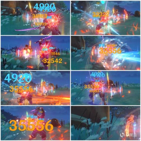 那么会不会抢反应呢,这是胡桃七次重击的伤害(100%暴击),因为公义会移动,我试了几次都没打出第八下,就随便放张图凑数