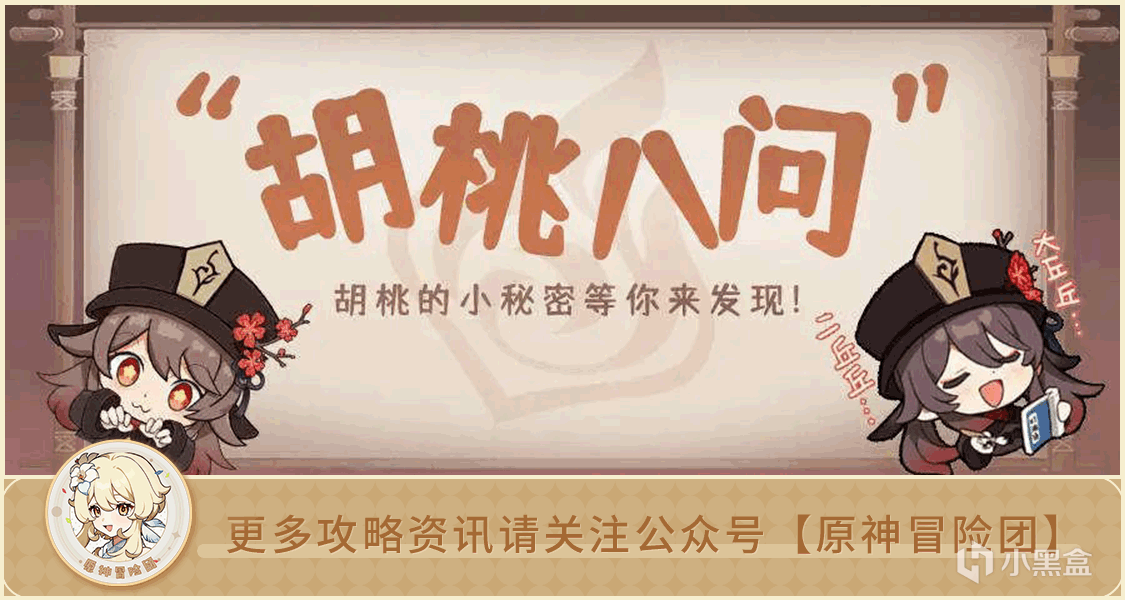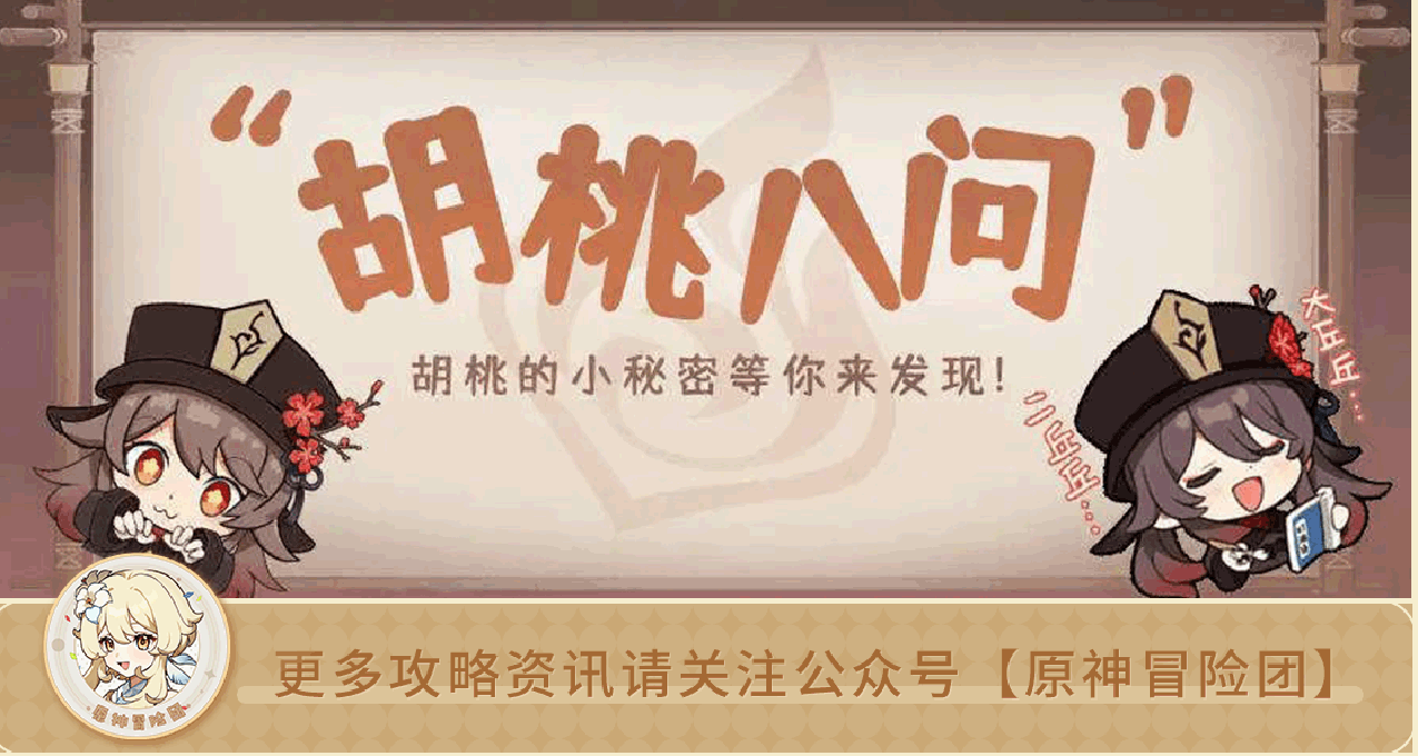为了良好的阅读体验,胡桃八问的前四问在今天头条文章展示,配合胡桃角色攻略,相信能让大家对胡桃会有更深刻的理解~