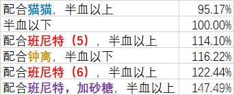 可以看到,除非班尼特点上六命,否则都是不如钟离的