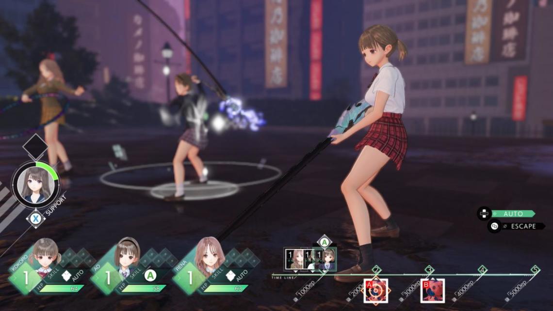 本作在战斗玩法上有着很强的节奏感,制作组抛弃了原本rpg传统的回合制战斗模式,而是在此基础上改良,采取了更加适合现代玩家的半即时回合制玩法。在进入战斗后,玩家操控的每位美少女只是处于握持武器的状态,并未变身成反像者,需要通过积攒Gear值来变身。游戏引入了艾提尔点数(ep),也就相当于蓝条,角色的艾提尔点数(ep)会随着时间的推移而增长,玩家消耗相应的ep值使用技能后便可增长Gear等级,而Gear等级的提升将带来ep上限的提升,从而使用消耗更多ep的强大技能,或者积攒ep,打出连击,在Gear等级提升到3级时,美少女将会激发戒指的能量,变身成为更加强大的反像者,并且新增了强大的技能,因此ep的合理安排,增加了游戏的策略性和玩家参与感,游玩体验大大提升!