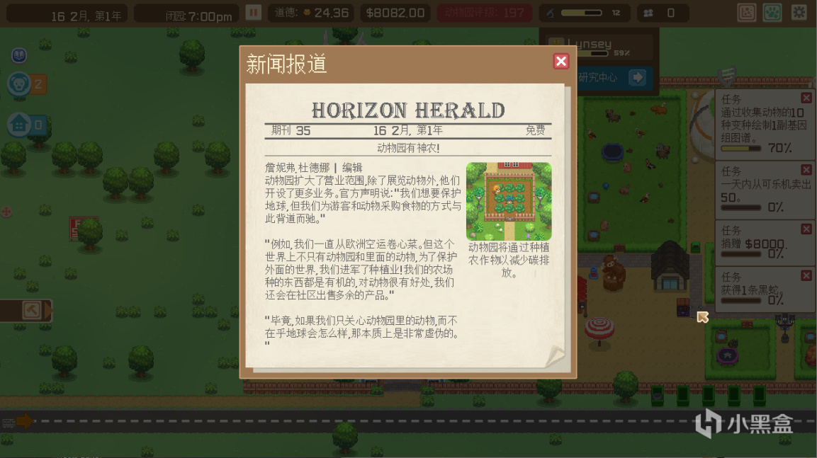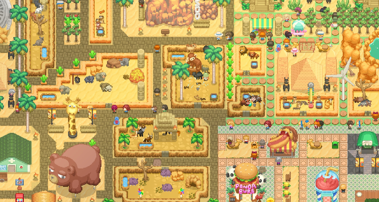 脑洞极大地《动物园》终于上线了,在这个可爱的像素模拟经营动物园里,玩家可以放飞自我、天马行空,繁衍各式各样的稀有动物,甚至通过基因序列创造异体动物。通过搭建各种各样的围栏和装饰,选择属性各异的员工,通过突发任务的善恶选择,搭建欢乐的动物园农场或者是阴暗的屠宰场。