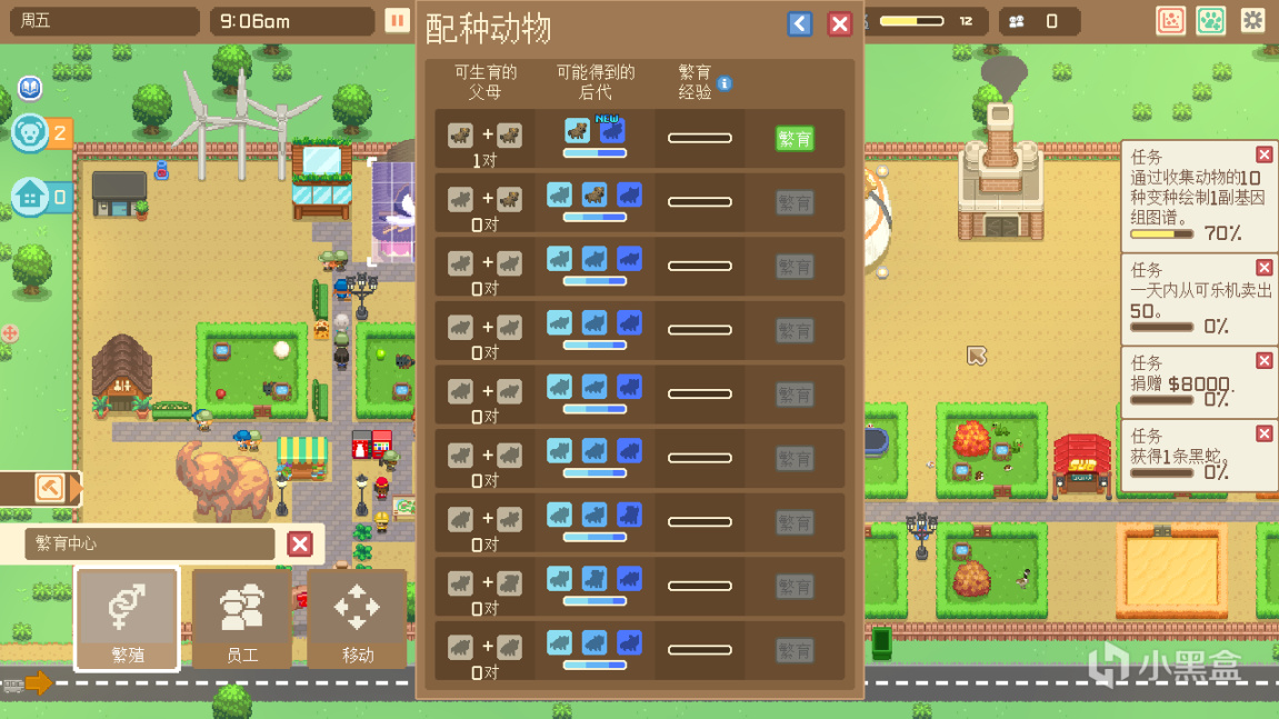 通过建立繁育中心,可以指定性的进行动物繁衍,逐渐的解锁所有该动物的10种变种,在完成基因序列收集后,可以搭建基因编辑器,通过基因编辑器可以完成本作最夸张的动物合体,比如兔鹅—兔头鹅身,鹅兔—鹅头兔身,这些畸形动物会让游客大开眼界,但会让部分玩家感觉到过于离谱。