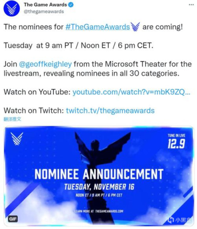 TGA2021各大奖项提名将在11月17日公开: