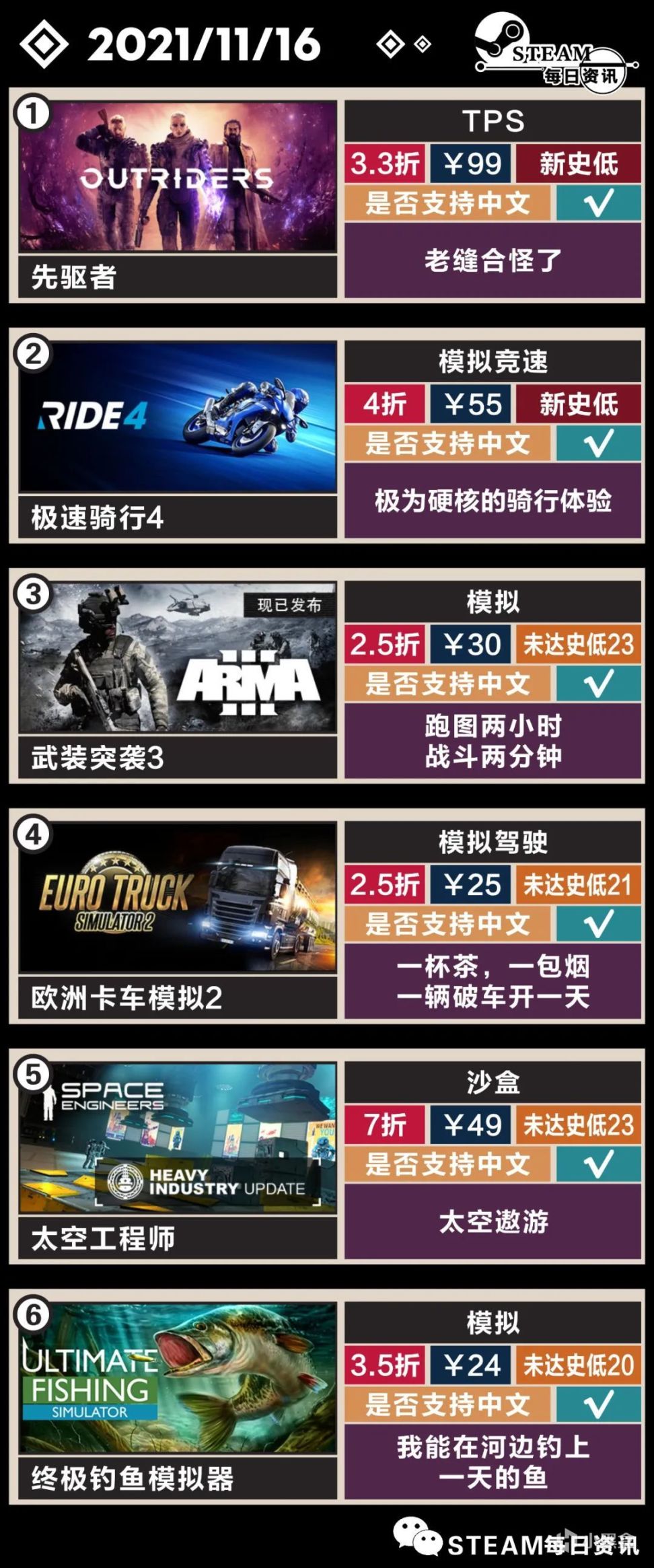文章中的史低时间分为第一次和最近一次史低时间,近期折扣情况/次数也会注明;配置要求是根据官方商店页面给出的最低配置,不一定准确,仅供参考;游戏时长为个人预估,部分游戏会根据个人喜好有所不同,仅供参考(100+小时可视为无上限)。