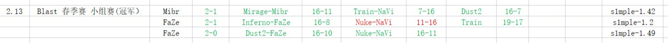 紧接着是2月初开始的Blast 春季赛小组赛,四只队伍一组。NaVi在首轮轻松战胜MiBR(虽然很少人觉得NaVi会输,但是NaVi却在图二 强图Train上CT崩盘,出乎意料。)后在胜者组与FaZe相遇,然后两度战胜FaZe后(在火车上胖球在残局中火中拆包,当面致敬奥利夫)确立了小组第一成绩。值得一提的是,在Olof回归FaZe后,虽然确实很难跟NaVi扳手腕,但还是艰难地帮助FaZe出线了。