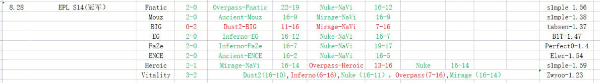 接下来是EPL S13。NaVi的分组还不错,但是NaVi这阶段的指挥出现了很大的问题。据说是电子哥觉得自己对于Mirage的理解很好,于是请求在Mirage这张地图上试着指挥。于是结果就是NaVi在对阵Furia等队伍时,上半场担任CT方时打的有模有样,下半场一换边,NaVi直接不会玩了,直接上演了一个土匪一分不拿。最后沦落到需要看巴西队伍和C9脸色才能出线的情况。虽然最后巴西兄弟很给力,但是这个状态的NaVi很明显即使出线了也还没有调整好,于是淘汰赛第一轮就被淘汰了。成绩是9-12th,这也是NaVi今年最差的成绩。
