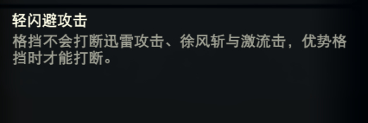 向左右进行闪避,在过程中输入轻击即可打出徐风,该技能为蓝光,无法闪避,可被格挡,且能使用闪避帧躲避火刀惩罚。