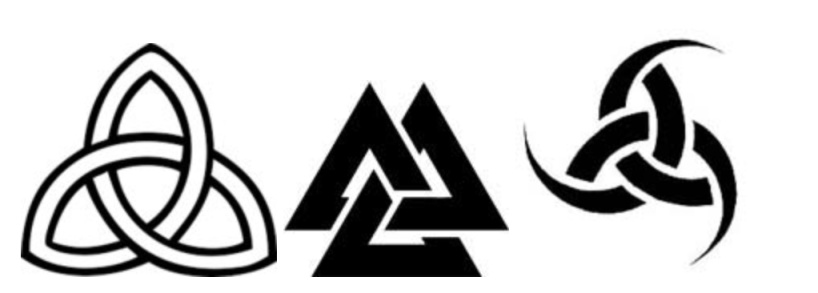 这个纹样有非常多的变形,中间叫做Valknut,右边叫做Triple Horn,都是与奥丁相关的