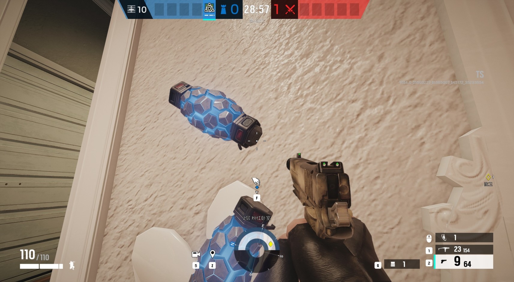 剃刀花在手雷的基础上添加了一些其他功能:比如加装了两组夹钩,使得它可以固定在平面或是其他物体上。两侧各有三个红色的小块,我推测其中应该是激光距离传感器,用于检测靠近的人。有趣的是在其中一侧还能看到一个USB接口的标志,意味着这个装置是可编程的,也就是说可以调整发光方式,感应距离或是爆炸延迟等。也就是说,游戏中设置为3.5秒后爆炸完全是出于仁慈。