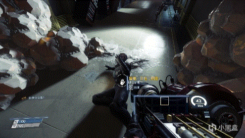 在玩家的拿起Gloo炮的同时,原本冻住的拟态突然解冻,此时玩家自然会下意识地按下左键射击,进而学会用Gloo炮冻住敌人。整个过程没有任何文字描述。